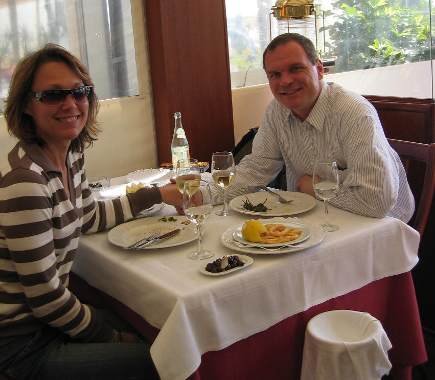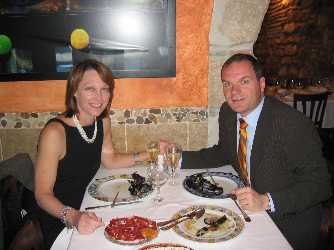 On Monday, 12th, we celebrated our one-year-anniversary at the restaurant "Passadis d'en pep", where the Spanish prince normally eats, when he is in Barcelona. We thought, this might be good enough for us ;-))) There's no menu, served is what comes fresh from the market. So we sat down, got cava (Spanish champagne) and the first dishes ... without being asked. But it was delicious!!!