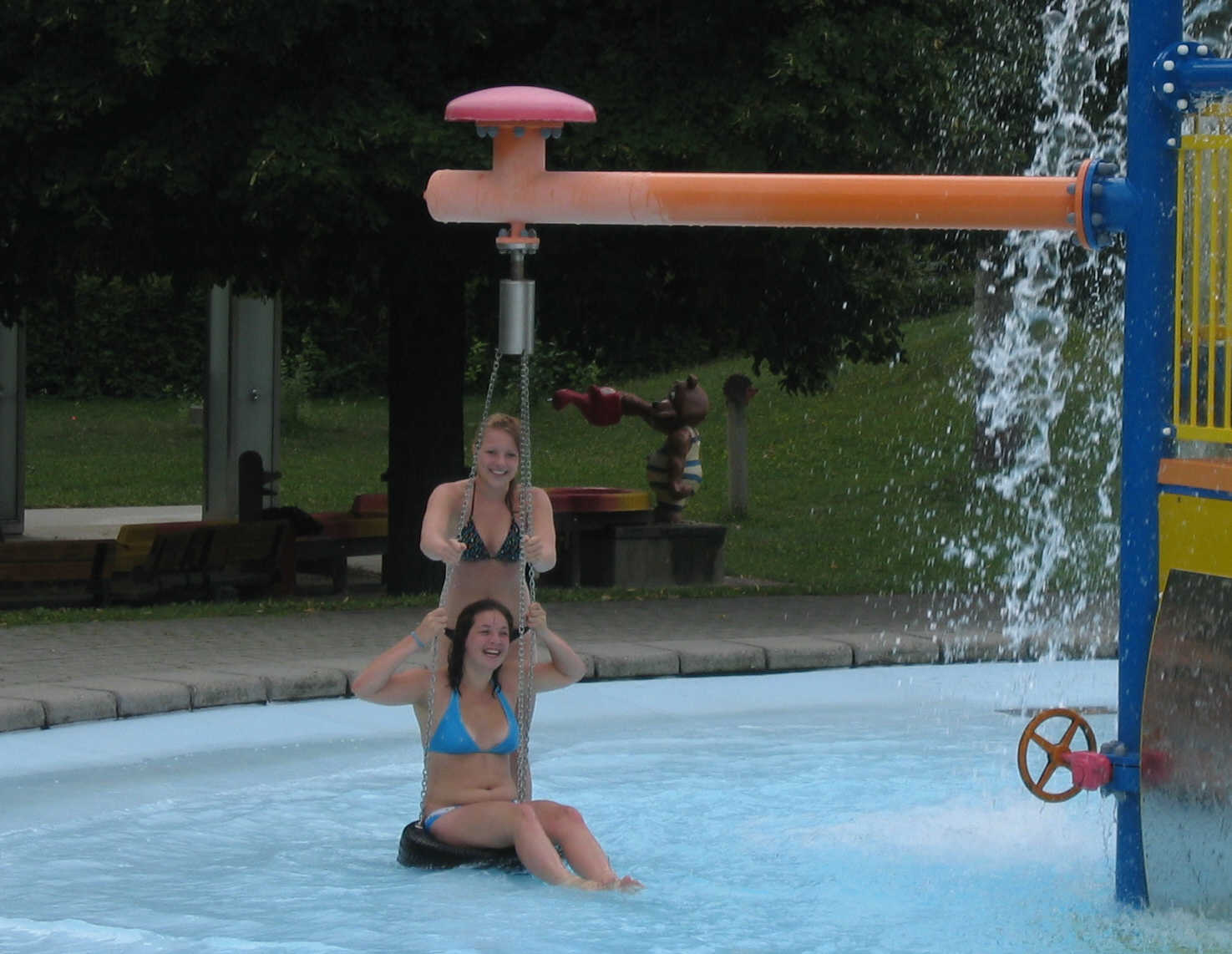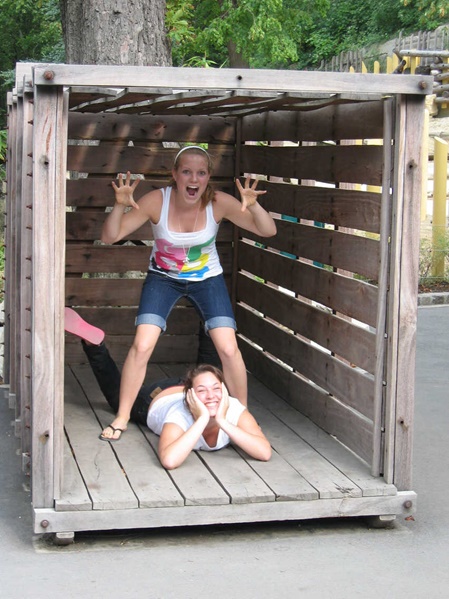 Sunday, we followed Claudia's wish and went for a swim in a 100 year old pool at the river Danube ... little bit cold, but refreshing ... of course not suitable for an Australian wuss, i. e. Cynthia watched the water from a safe distance! Furthermore we went to the "Prater" park, where Cynthia and Thomas had a ride in one of the oldest ferris wheels and the girls had some fun rides.