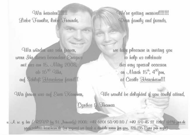 Thanks to all our friends, who contributed so much to this wonderful night, who were just happy together with us and shared this miracle, that happened to Cynthia & Thomas. Thank you!