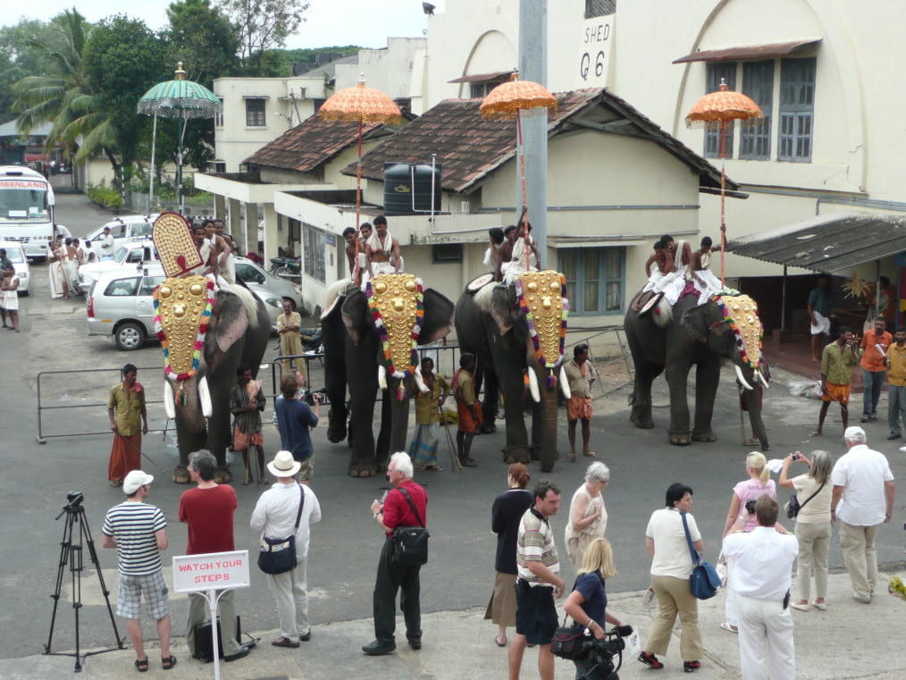After a lot of gift shops (where we actually bought two t-shirts and a plastic model of a tuk-tuk taxi), we went back to the ship and a farewell ceremony with elephants was prepared for us ...