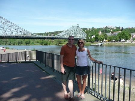 Monday, we did a sight-seeing tour by bus, train and ship ... approx. 2,5 hours that gave us a good overview of Dresden ... here in front of the bridge "Blaues Wunder" (blue wonder) ... quite an engineering challenge at its time ...