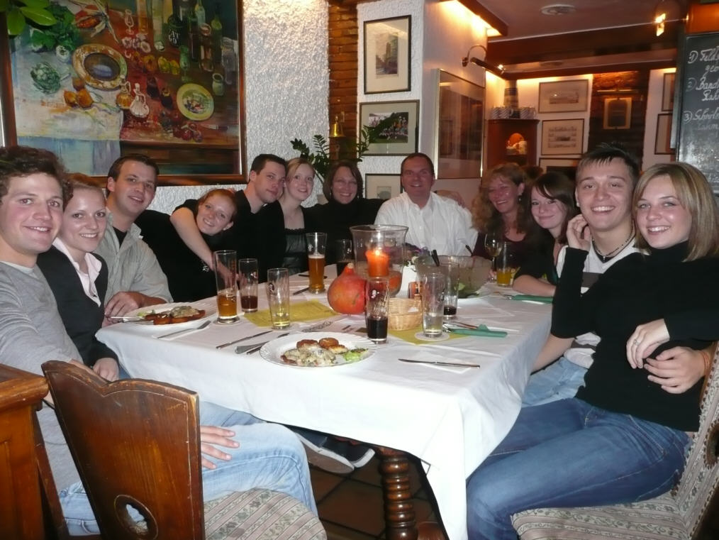 ... on Jared and Kirsten’s second last night here, we managed to get everyone together for a wonderful dinner at Deibsloch ...... photographed here from left to right, Tash, Lukas, Lukas’ sister Jana and mum, Barbara, Thomas, Cynthia, Kirsten, Jared, Carola, Philip, Claudia and Valentin ...