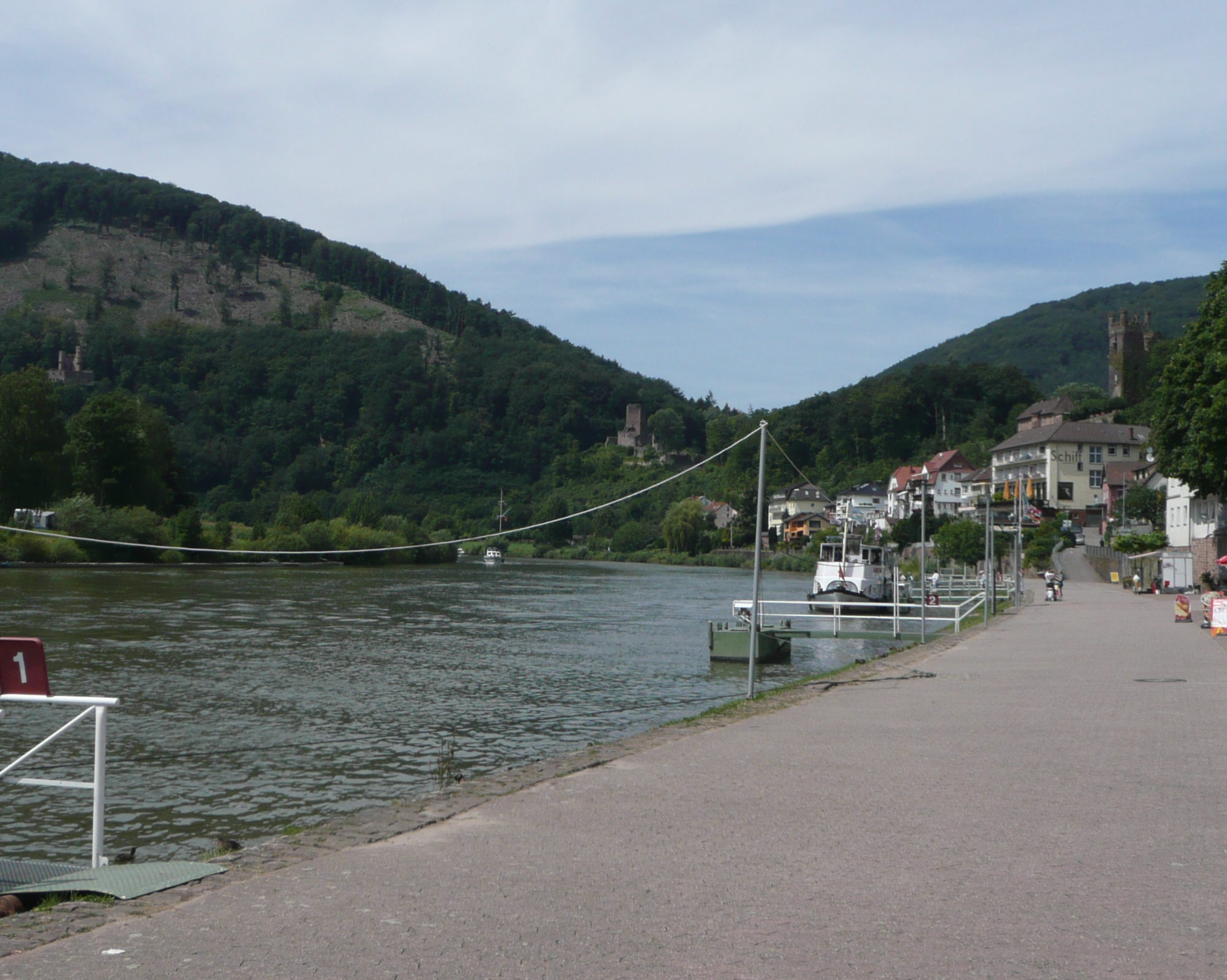 On another day, Cynthia and Moira were able to enjoy a wonderful cruise from the Neckarsteinach to Heidelberg …. here leaving the Neckarsteinach (with the three castles in the background) …..