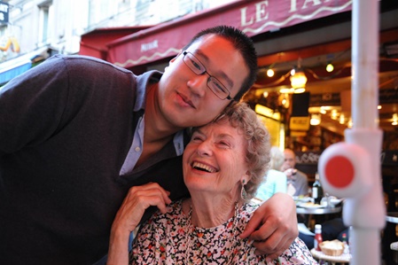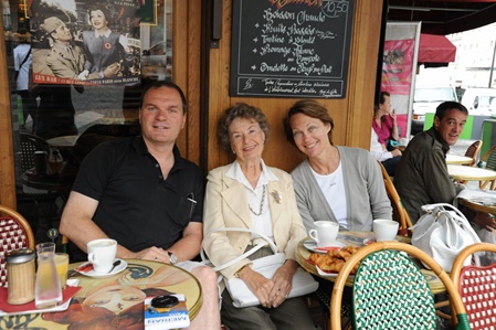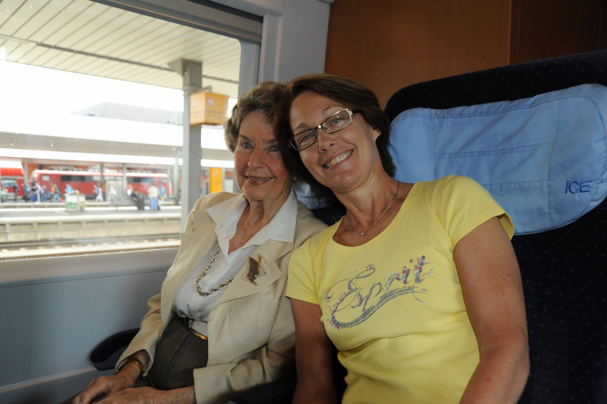 ….. Moira celebrated her 80th birthday in May and as a special gift, Cynthia and Thomas gave her 3 days in Paris ….. here Moira and Cynthia on the ICE-train on the way to Paris!!!
