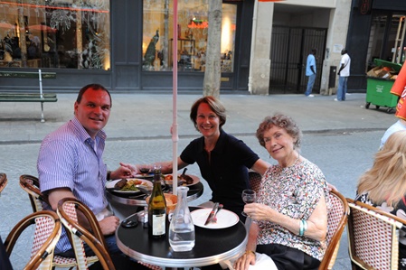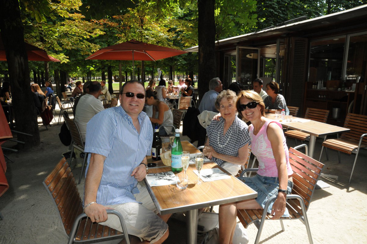 ….. we started exploring …. here a photo of Thomas, Moira and Cynthia relaxing in the Jardin de Tuileries …..