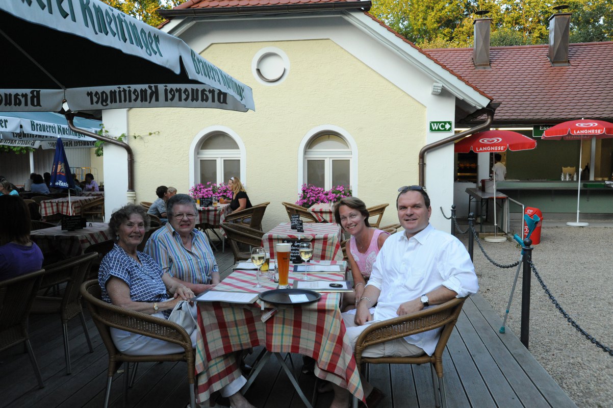 ….. here enjoying a warm summer evening, in a typical ‘Bavarian Biergarten’ ….