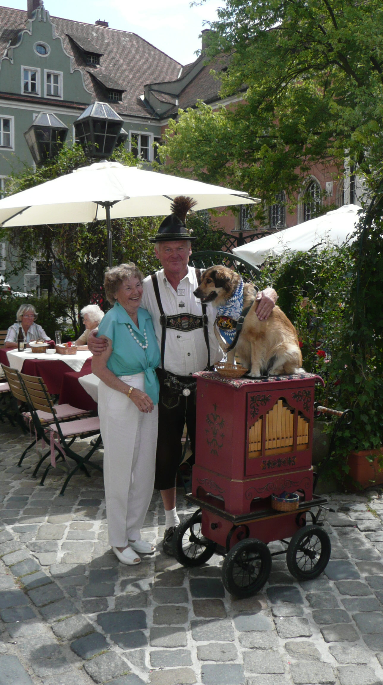 ….. the next day Moira, Cynthia and Ruth, visited the city of Regensburg ….. here we are in the Bischofshoff …. yet another great Bavarian Biergarten …. where ….