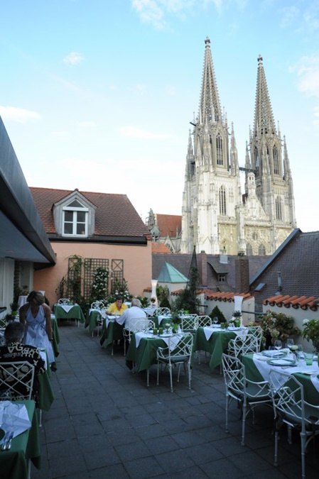 ….. with the magnificent Regensburg Cathedral in the background ….