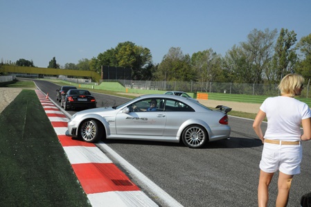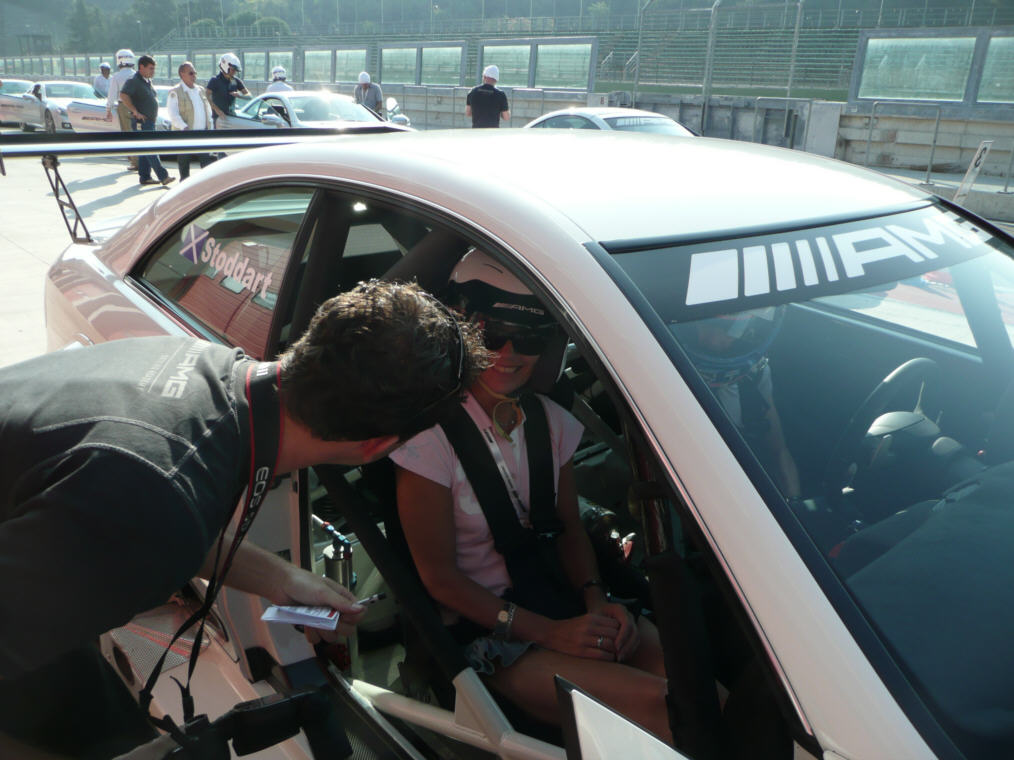 Part of Thomas' new car was a basic training with AMG (the fast Mercedes') ... which he upgraded to the two-day advanced training on the formula 1 racetrack at Imola, Italy.