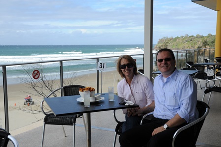 We decided not to shorten our trip and to spend a bit more than a week in Queensland to relax a bit ... here having a coffee at "Rocks Resort" at Currumbin ...