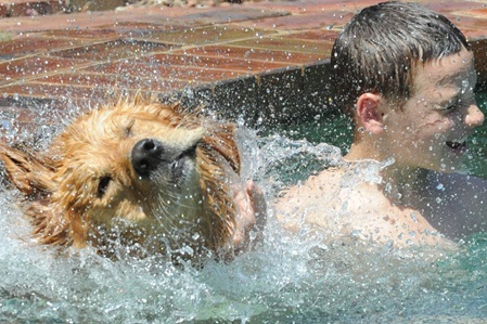 ... some special shots of their son Sam and the house dog Roxy in the pool ...