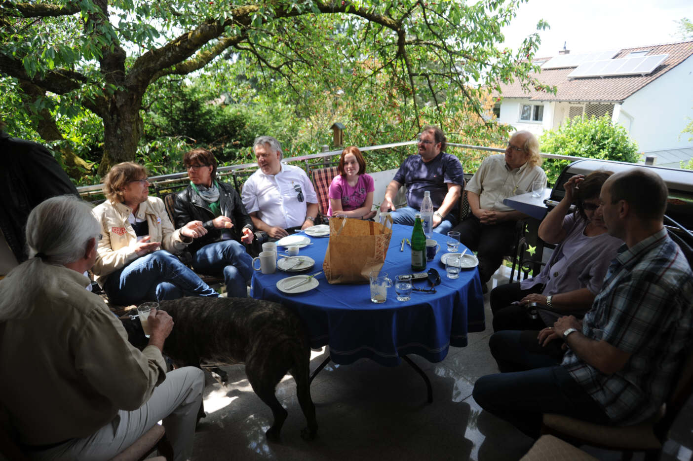 We started the day with a little snack (Brezels) on our balcony ... incl. briefing with the roadbook.