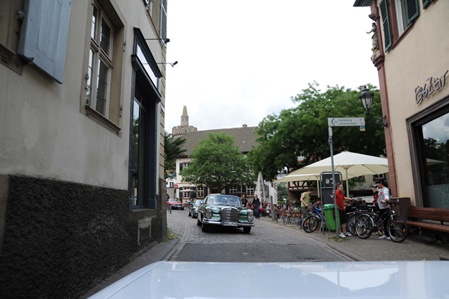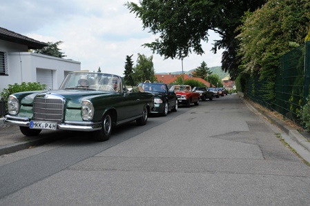 Quarter past two, the tour started here in Mozartstrasse (first car here is a W111 convertible from 1968) ...