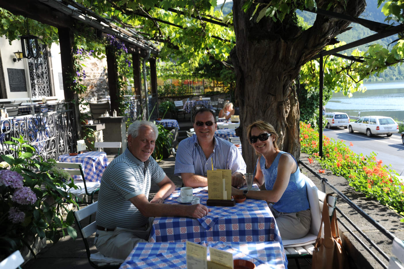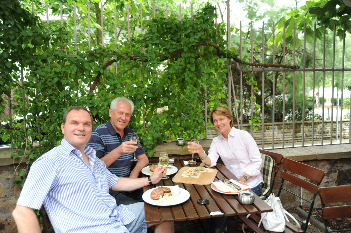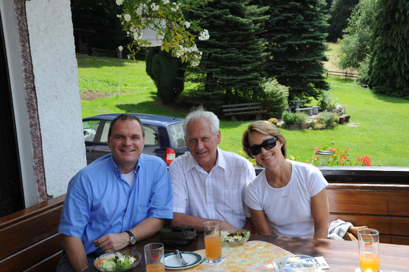 After his arrival we took him on a little tour through the Odenwald, the woods adjacent to Weinheim ... here having lunch in a little restaurant there ...