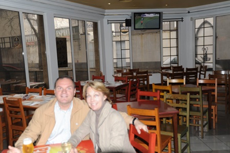... further on we found the local brewery (which was mentioned during the bus tour) ... the Germans actually helped in the beginning in the 19th century ... And as you can see, when a guy really CAN'T take photos, funny effects happen ... as the pub is sharp, the two of us look like put in by photoshop ...