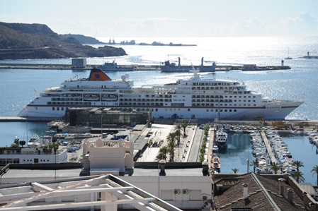 Next stop was Cartagena, a beautiful old city along the Spanish Coast ... here the first glimpse from our suite ... the harbour and the castle on top ...