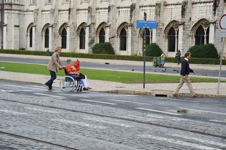Here our lecturer running ahead with Cynthia in hot pursuit trying to follow with Ruth in the wheelchair ...