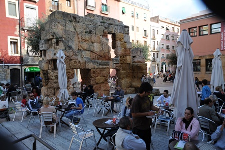 Next day we arrived in Barcelona where we took a bus trip to Tarragona ... we've been in Barcelona already ... it turned out to be a good decision as it rained all day in Barcelona, but we had beautiful sunshine there! After 1,5 hours drive we arrived in this wonderful old town ... here a first impression after leaving the bus ... have a look at the colourful posts here ...Well, we were really very impressed with Tarragona and can only recommend to visit this city!