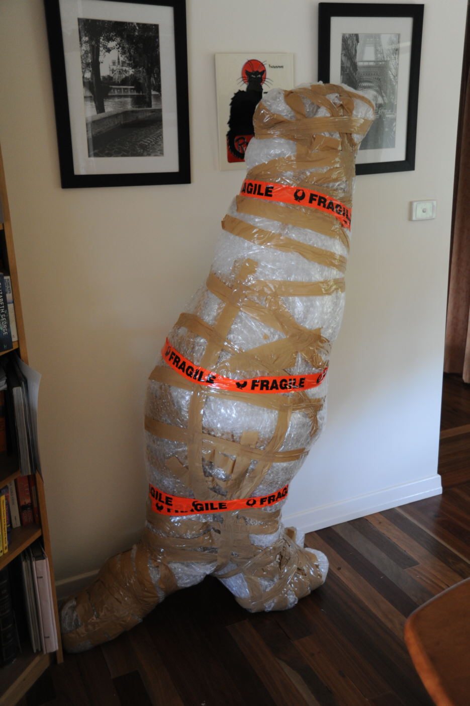 Last thing to report is this little project: After seeing a life-size kangaroo @ Healesville Zoo in 2009, Thomas wanted to have one of those at home in Germany ... so after phone calls with Qantas it could be shipped with our luggage ... ... here still in Warrandyte ... firmly wrapped in bubble foil ...