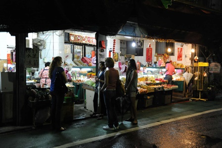 That night we followed the recommendation of the hotel for a local restaurant ... and the guy on the photo was selected by all guests to translate the Chinese menu into English with his iphone! Something in the translation went wrong, because we ended up with a platter of frog legs (left on the photo)!!!When we arrived in Keelung we asked in the hotel for a bar for a drink after dinner: