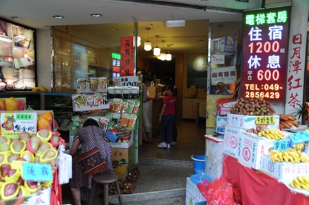 Next morning we picked up our hire car and drove about 2,5 hours to the middle of the country, to the Sun Moon Lake, the No1 honeymoon location in Taiwan ... We needed a moment to identify our superb 1,5-star hotel as the reception was well hidden behind a fruit stand, which was also operated by the owner (in our defense: we were misled by the name "Tanxiang Resort Hotel) ;-)