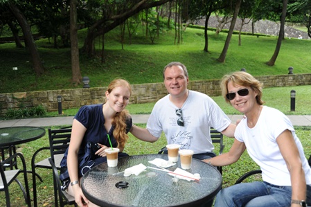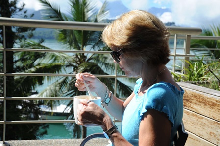 Next day we went on a boat tour with two stops. To add some spice to our adventure, Cynthia hit her mouth against a pole on the boat, when a - little - wave moved the boat. It was bleeding heavily and after close examination we found out, her lower corner tooth wanted to have a look outside ... it went through her lower lip!!!! So at our first stop we went to the first aid and got some ice!!!