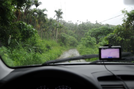 We then decided to drive a bit further South along the East Rift Valley ... as it got late, we wanted to take a short-cut through the mountain towards the ocean ... that's the road we ended up on. After passing many "problematic" spots for our car (ditches and mud) we finally got stuck there ... just too risky to drive on. So Thomas had to turn the car around and we had to go all the way back!