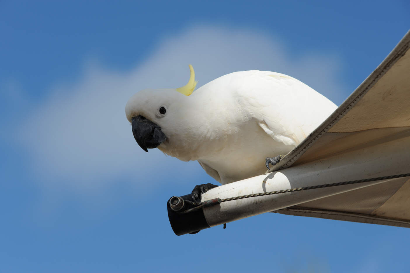 ... and - as last year - the cockatoos at breakfast were lurking over the sun umbrellas for food ... Btw.; on the tables there was a little ceramic pot (incl. lid) for the sugar. These birds are so clever to open the pot and (!) put the sweetener aside and just open the sugar packets and eat the sugar in it!