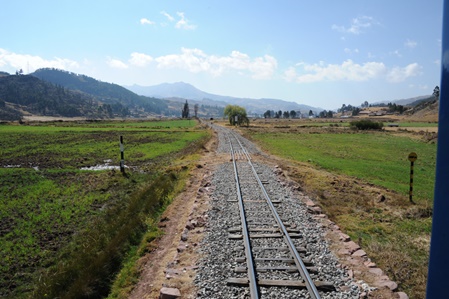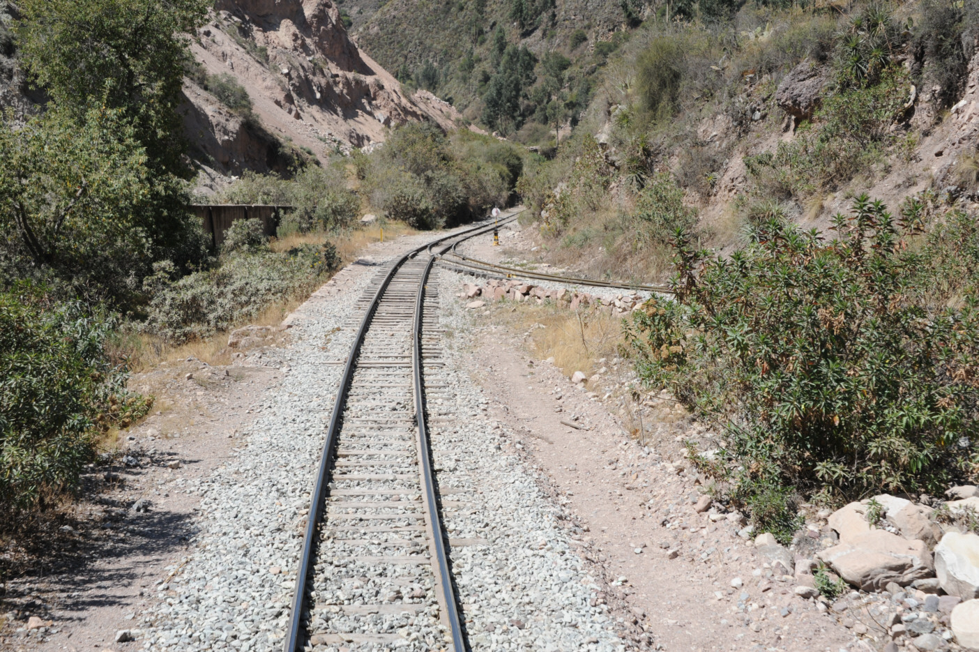 This was quite an interesting part. To get the train several metres down the hill a "zig-zag" course was built into the mountain (photo shows the bottom): The train stops, reverses back down the hill (see the track from the right), stops again and continues in the original direction ... pretty clever!