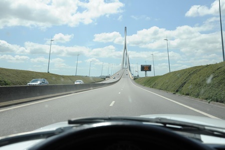Monday morning, 5:30, we started with the SL and a set of new tyres in Weinheim for our 950kms trip to Cherbourg in France, where we had to catch the ferry at 18:00 hrs for Rosslare, Ireland. So we had this view here out of the car for long hours (the bridge is close to LeHavre) and 51 (!) Euros of toll (one-way) ... ... if we had missed the last check-in at 17:00 we would have had a France holiday instead ;-)