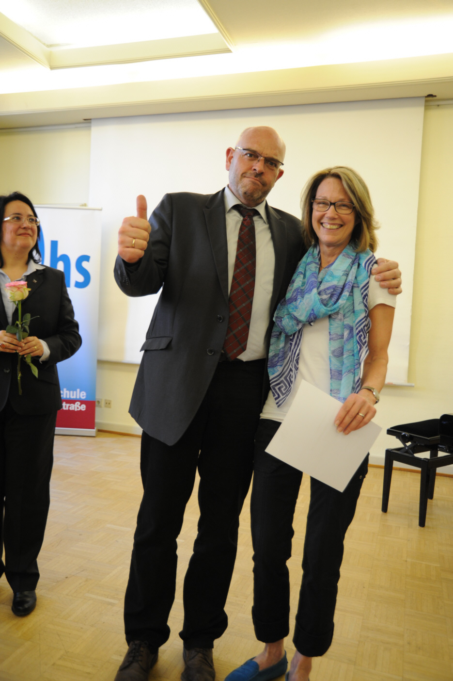 After finishing her German classes with excellent results, Cynthia got her certificate today personally from our "Buergermeister", our Mayor. A nice little ceremony, welcoming all the people from 23 different countries and congratulating them for their results!