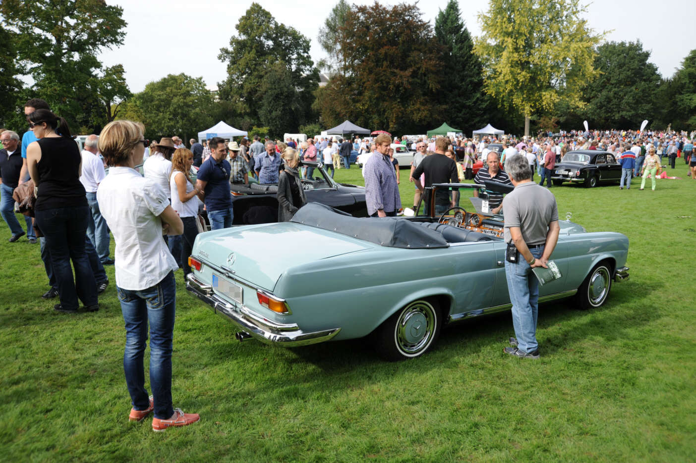 750 years city rights of Weinheim: one celebration was a huge vintage car concours in our castle park (80 cars) ... up to 100 year old cars ... and due to the weather heaps of people ... we participated also in the category "60s" ... Great event!