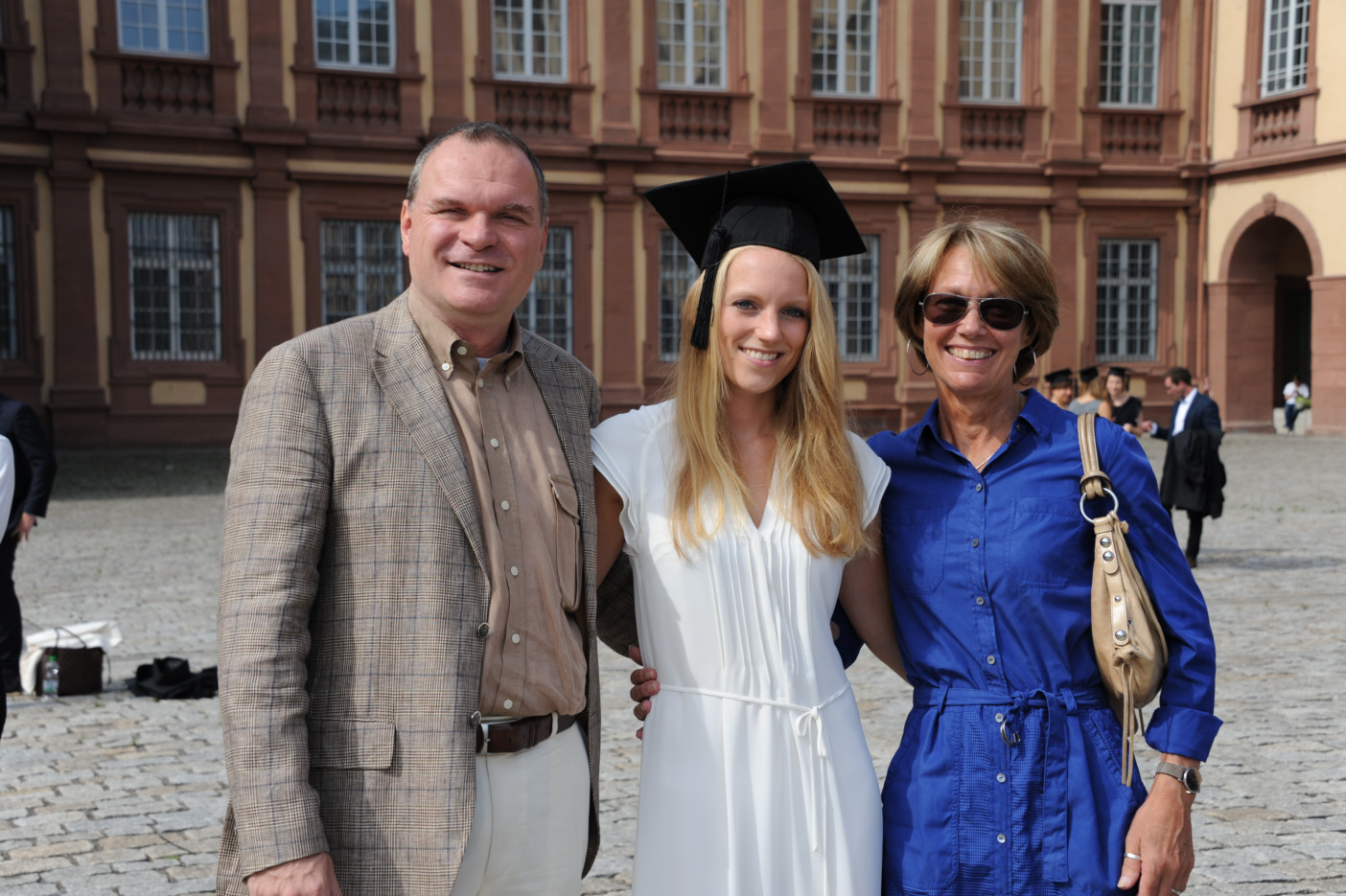 Claudia finished her studies of Economics now with a fantastic result. So that Saturday the official graduation took place in Mannheim ... here the proud old people with her ...
