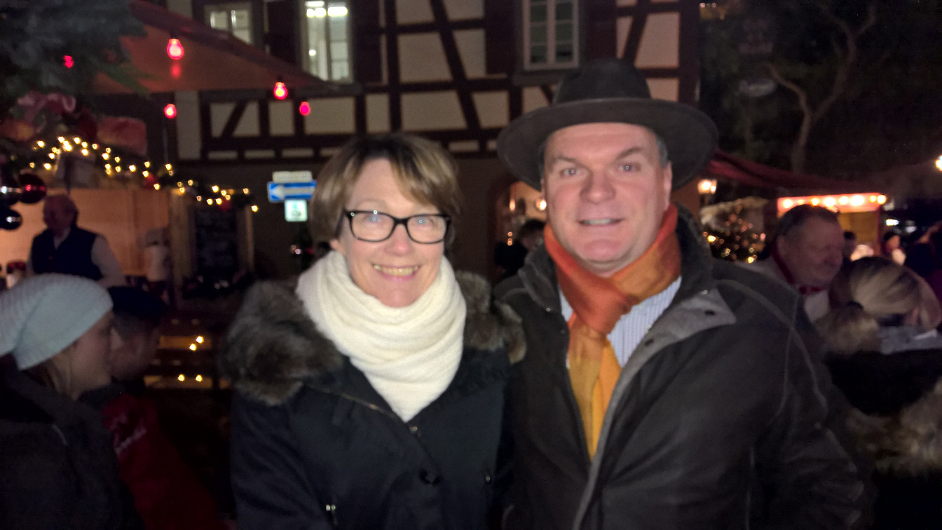 Well it's this time of the year again. As the Weinheim xmas market is only open on weekends, we took the opportunity and planned to have one Gluehwein. We met a nice couple there (he's from Texas, she's German), so we ended up with three each!